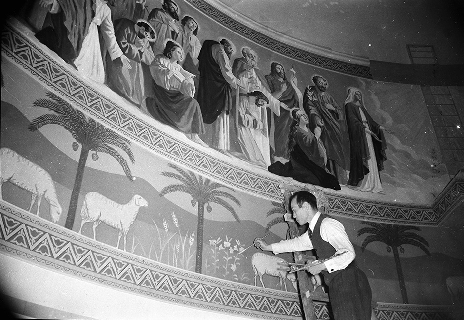 【写真】初代山口サビエル記念聖堂壁画制作中の中田秀和